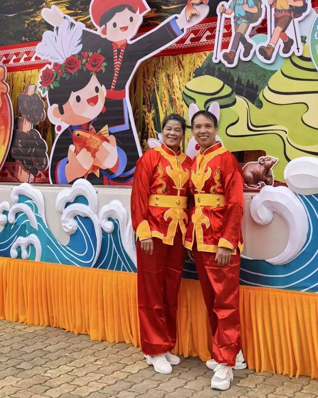 林火路夫妇。林火路夫妇俩已经年过六旬,早前在清远市区帮孩子带孙子。去年,夫妇俩回到连南寨岗镇老家,种了几亩菜地。本届瑶族文化艺术活动筹备过程中,舞龙项目曾面临人员紧缺的困境——原培训人员因故退出,招募新人又因训练辛苦遇阻。项目联系人抱着试试看的心态,联系了曾参加过清远市文化馆女子舞龙队的李凤英,尽管自家距离排练地点有30多公里远,但热心肠的夫妇俩还是毫不犹豫地答应参与。林火路说,“花了一两个晚上就上手了,能为瑶族文化出点力,我们很开心。”来源:南方都市报